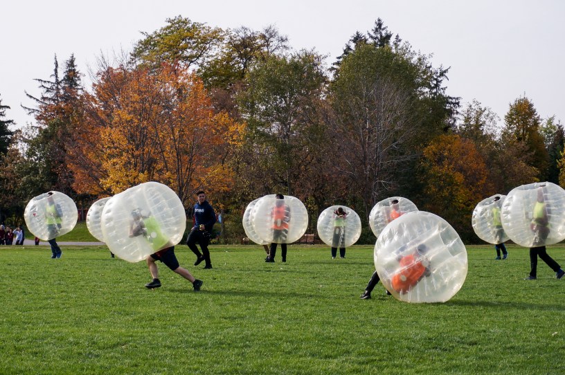 On Friday October 27, 2017, students of St. Augustine ventured outside to join in the festivities in spite of the crisp, autumn air. St. Augustine’s first ever fall carnival, organized by the Student Activity Council (SAC), officially began at 2:00PM. Some classes went down to the fields earlier to watch the invigorating games of bubble soccer played by the students and teachers. The cheer team was also in the fields, donning their Titans spirit wear and bringing school cheer.