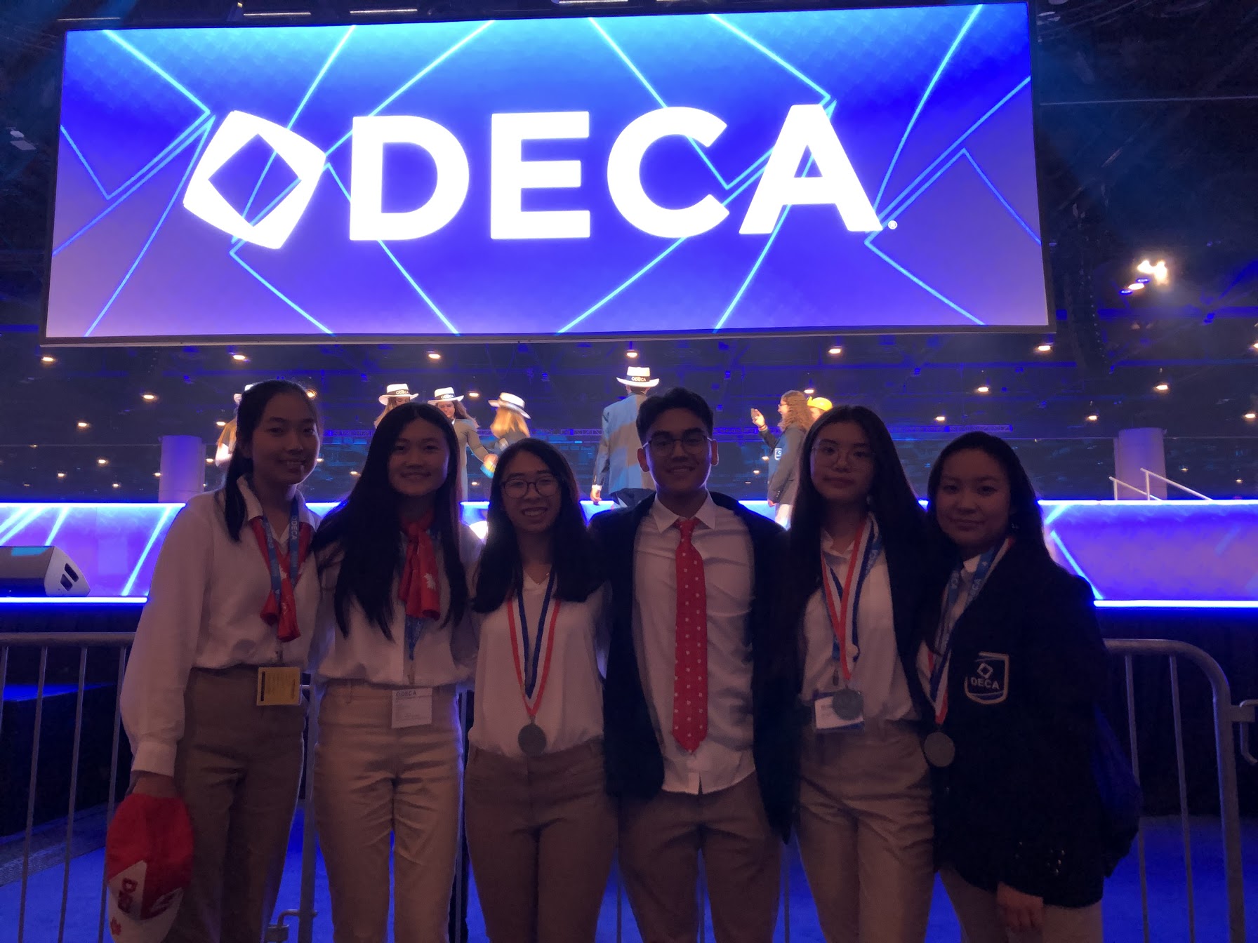 On the last week of April, six members of the St. Augustine DECA chapter – Vincent Bonus, Sheridan Fong, Caitlin Chan, Elaine Zhang, Gloria Zhou, and Wendy Zhou- along with their advisor, Ms. Fujiwara, brought their best to the International Career Development Conference stage in Orlando, Florida. Each member competed individually or as a team in a range of marketing, hospitality and tourism, finance, and entrepreneurship- based events against more than 15,000 competitors from 10 countries.