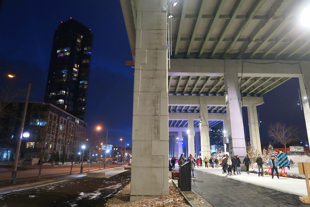 The Bentway Skate Trail is a 220 metre skate trail located underneath the Gardiner Expressway. On most days there will be skate rentals and lessons available. In addition there is an on-site winter village selling comforting and hot snacks and beverages to complete the experience. The skate trail is the perfect place to bring family and friends together to connect outdoors.