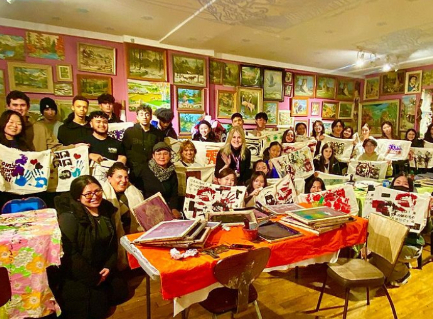 Peach Berserk was the one place which I was excited to visit again. Owner Kingi Carpenter made the big decision to buy the shop during Covid and make it into her own art studio and event space. Upon entrance, the space screams creativity as the walls are plastered with her large collection of paint-by-number paintings. Kingi offers many workshops such as silk screening, which we were able to use on custom tote bags, as mine can be seen below.